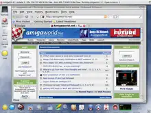 Timberwolf was a bounty-funded project to port Mozilla Firefox to AmigaOS 4.[1] It was started in early 2009 as a parallel to AmiZilla, which had the same intent. AmiZilla had a more complex history, as it was started in 2003 by the US firm DiscreetFX with the target of porting a running version of the Gecko engine-based Firefox compatible browser to Amiga platforms. As AmiZilla was too ambitious, the project was halted on November 19, 2009, without significant results. Timberwolf was originally managed by Thomas and Hans-Joerg Frieden (AmigaOS 4 core developers).