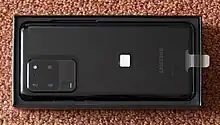 The first mobile phone released with such technology was the LG G3, from early 2014.[29] The BlackBerry Passport and the LG G Flex 2 were also launched with a ToF sensor.[30]
