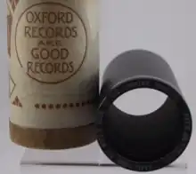 | 1907 | Indestructible Record | ![]() Indestructible Record cylinder, vertical groove. Constructed of black celluloid on a cardboard core with metal bands at each end |