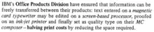 - In the mid-1960s, a derivative of Times New Roman known as 'Press Roman' was used as a font for the IBM Composer.[152] This was an ultra-premium electric 'golfball' typewriter system, intended to be used for producing high-quality office documents or copy to be photographically enlarged for small-scale printing projects.[152] Unlike most typewriters, the Composer produced proportional type, rather than monospaced letters. Ultimately the system proved a niche product, as it competed with increasingly cheap phototypesetting, and then in the 1980s was largely displaced by word processors and general-purpose computers.[153][154][lower-alpha 11]