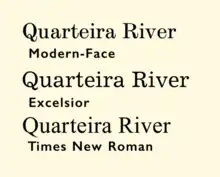 During the nineteenth century, the standard roman types for general-purpose printing were "Modern" or Didone designs,[lower-alpha 6] and these were standard in all newspaper printing.[36][37] Designs in the nineteenth-century style remain a common part of the aesthetic of newspaper printing; for example in 2017 digital typeface designer Tobias Frere-Jones wrote that he kept his Exchange family, designed for the Wall Street Journal, based on the nineteenth-century model as it "had to feel like the news."[38] According to Mosley and Williamson the modern-face used by The Times was Monotype's Series 7 or "Modern Extended", based on typefaces by Miller and Richard.[39][40]