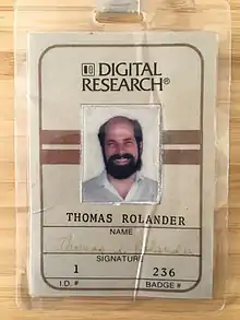 Digital Research Employee Badge, THOMAS ROLANDER, I.D. #1