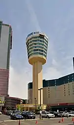 The Tower Hotel,[1] opened in 1962, is located in the Fallsview district of Niagara Falls, Ontario and was the first of the contemporary observation towers built near the brink of the Falls. It features an indoor observation deck, restaurant, and hotel. The tower is 99 metres (325 feet) tall above street level and 160 metres (520 feet) above the falls. The tower assumed its present name in 2010 as a result of its most recent renovation; as Minolta was the longest-tenured sponsor of the building, tourists and locals may still call it the Minolta Tower.