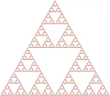 The sides of the outermost triangle represent the shortest ways of moving a tower from one peg to another one. The edge in the middle of the sides of the largest triangle represents a move of the largest disk. The edge in the middle of the sides of each next smaller triangle represents a move of each next smaller disk. The sides of the smallest triangles represent moves of the smallest disk.