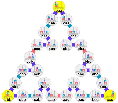 - ↑ Romik, D. (2006). "Shortest paths in the Tower of Hanoi graph and finite automata". SIAM Journal on Discrete Mathematics. 20 (3): 610–622. arXiv:math/0310109. doi:10.1137/050628660. S2CID 8342396.
