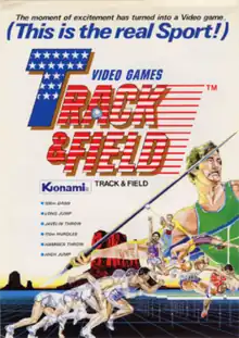 Track & Field, also known as Hyper Olympic[lower-alpha 1] in Japan and Europe, is a 1983 Olympic-themed sports video game developed by Konami for arcades. The Japanese release sported an official license for the 1984 Summer Olympics. In Europe, the game was initially released under the Japanese title Hyper Olympic in 1983,[5] before re-releasing under the US title Track & Field in early 1984.[6]