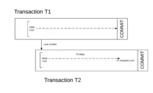 A transaction is a collection of operations that can execute and commit changes as long as a conflict is not present. When a conflict is detected, a transaction will revert to its initial state (prior to any changes) and will rerun until all conflicts are removed. Before a successful commit, the outcome of any operation is purely speculative inside a transaction. In contrast to lock-based synchronization where operations are serialized to prevent data corruption, transactions allow for additional parallelism as long as few operations attempt to modify a shared resource. Since the programmer is not responsible for explicitly identifying locks or the order in which they are acquired, programs that utilize transactional memory cannot produce a deadlock.[2]