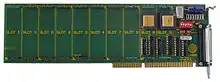 To provide an easy means of prototyping, constructing and configuring multiple-transputer systems, Inmos introduced the TRAM (TRAnsputer Module) standard in 1987. A TRAM was essentially a building block daughterboard comprising a transputer and, optionally, external memory and/or peripheral devices, with simple standardised connectors providing power, transputer links, clock and system signals. Various sizes of TRAM were defined, from the basic Size 1 TRAM (3.66 in by 1.05 in) up to Size 8 (3.66 in by 8.75 in). Inmos produced a range of TRAM motherboards for various host buses such as Industry Standard Architecture (ISA), MicroChannel, or VMEbus. TRAM links operate at 10 Mbit/s or 20 Mbit/s.[11]