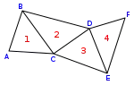 For example, the four triangles in the diagram, without using triangle strips, would have to be stored and interpreted as four separate triangles: ABC, CBD, CDE, and EDF. However, using a triangle strip, they can be stored simply as a sequence of vertices ABCDEF. This sequence would be decoded as a set of triangles with vertices at ABC, BCD, CDE and DEF - although the exact order that the vertices are read will not be in left-to-right order as this would result in adjacent triangles facing alternating directions.