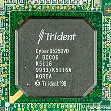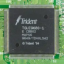 Established in 1987, Trident gained a reputation for selling inexpensive (for the time) but slow SVGA components. Many OEMs built add-in-boards using Trident VGA chipsets. As the PC graphics market shifted from simple framebuffer displays (basic VGA color monitor and later multi-resolution SVGA output) to more advanced 2D hardware acceleration such a BitBLT engine and color-space conversion (not to be confused with 3D hardware-acceleration), Trident continued its strategy of selling modestly performing chips at compelling price points. In the mid-1990s, the company (briefly) caught up with its main competition: the TGUI-9680's feature-set was comparable to the S3 Graphics Trio64V+, although the Trio64V+ outperformed the 9680 in true-color mode.