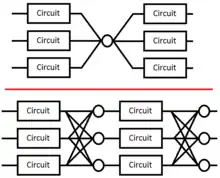 The majority gate itself could fail. This can be protected against by applying triple redundancy to the voters themselves.[9]