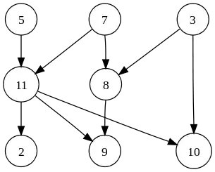tsort lists the vertices of a directed acyclic graph in such an order that all ordering/direction relations are respected: