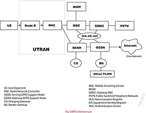 UMTS specifies a complete network system, which includes the radio access network (UMTS Terrestrial Radio Access Network, or UTRAN), the core network (Mobile Application Part, or MAP) and the authentication of users via SIM (subscriber identity module) cards.