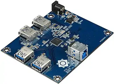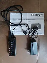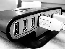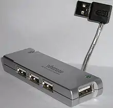 A USB hub is a device that expands a single Universal Serial Bus (USB) port into several so that there are more ports available to connect devices to a host system, similar to a power strip. All devices connected through a USB hub share the bandwidth available to that hub.[1]