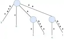 S[1..3]by adding suffixes ofxab(xab,abandb). Rule 1 applies, which extends the path label in existing leaf edge. Rule 2 applies, which creates a new leaf node. - Construct for