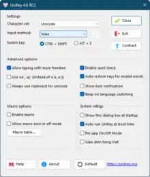 ![]() UniKey 4.6 RC2 settings dialog on Windows 11 | |
