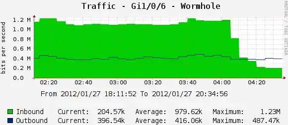 When a network is experiencing unicast flooding, network performance is degraded. Here is a graph of a bridge before and after adjusting the size of the bridge address cache:[1]