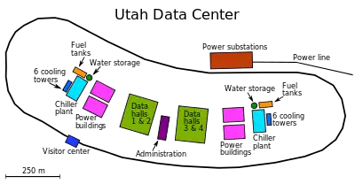 - ↑ Adams, Andrew (July 12, 2013). "New Utah NSA center requires 1.7M gallons of water daily to operate". Retrieved 2013-07-25.