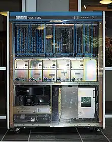 The first VAX model sold was the VAX-11/780, which was introduced on October 25, 1977, at the Digital Equipment Corporation's Annual Meeting of Shareholders.[16] Bill Strecker, C. Gordon Bell's doctoral student at Carnegie Mellon University, was responsible for the architecture.[17] Many different models with different prices, performance levels, and capacities were subsequently created. VAX superminicomputers were very popular in the early 1980s.
