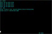 The Diagnose instruction ('83'x—no mnemonic) is a privileged instruction originally intended by IBM to perform "built-in diagnostic functions, or other model-dependent functions."[14] IBM repurposed DIAG for "communication between a virtual machine and CP."[15][16] The instruction contains two four-bit register numbers, called Rx and Ry, which can "contain operand storage addresses or return codes passed to the DIAGNOSE interface," and a two-byte code "that CP uses to determine what DIAGNOSE function to perform."[15] A few of the available diagnose functions are listed below.