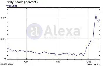 In July 2009, the site was ranked #30,500 by Alexa. By October 2009, the site had risen to rank #16,824.