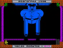 Due to the versatility and wide hardware capabilities,the Vector could be used for education, work and entertainment. As a gaming system it surpassed most of the other Soviet computers, thanks to its unique multi-color palette and reasonably fast graphics, smoother hardware vertical scrolling, capabilities of the hardware overlay up to 4 image planes, 3-voices sound chip, a fairly large amount of RAM, far more in line with Western computers in terms of specifications. There were hundreds of games in assembler and thousands in Basic created for Vector. Many games ported from the MSX standard, and almost without any changes (Rise Out, Putup, Alibaba, Eric, Binary Land, Pac-Man, Pairs, Stop the express, and others), and less from the ZX Spectrum and IBM PC (Exolon, Color Lines, Boulder Dash, Cybernoid, Filler, Best of the Best, and others). Many games developed specially for Vector: Ambal, Adskok, Grotohod, Polet (Flight), Planet of Birds, Sea Hunter, Death Fight, Cyber Mutant and others. Wide graphics capabilities in many cases allowed with absolute accuracy to simulate the MSX, Spectrum, IBM PC and other PCs.