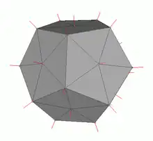 In the geometry of computer graphics, a vertex normal at a vertex of a polyhedron is a directional vector associated with a vertex, intended as a replacement to the true geometric normal of the surface. Commonly, it is computed as the normalized average of the surface normals of the faces that contain that vertex.[1][2] The average can be weighted for example by the area of the face or it can be unweighted.[3][4] Vertex normals can also be computed for polygonal approximations to surfaces such as NURBS, or specified explicitly for artistic purposes. Vertex normals are used in Gouraud shading, Phong shading and other lighting models. Using vertex normals, much smoother shading than flat shading can be achieved; however, without some modifications to topology such a support loops, it cannot produce a sharper edge.[5]