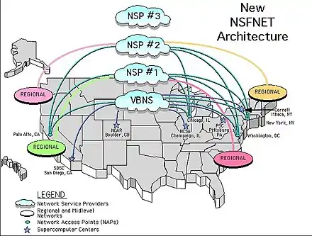 - NSF Solicitation 93-52 Archived 2016-03-05 at the Wayback Machine - Network Access Point Manager, Routing Arbiter, Regional Network Providers, and Very High Speed Backbone Network Services Provider for NSFNET and the NREN(SM) Program, May 6, 1993