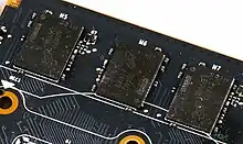 Modern VRAM is typically found in a BGA package[5] soldered onto a graphics card.[6] The VRAM is cooled along with the GPU by the GPU heatsink.[7]