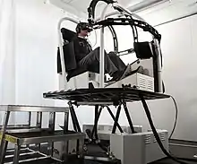 Virtual reality sickness (also known as cybersickness) occurs when a person's exposure to a virtual environment causes symptoms that are similar to motion sickness symptoms.[154] Women are significantly more affected than men by headset-induced symptoms, at rates of around 77% and 33% respectively.[155][156] The most common symptoms are general discomfort, headache, stomach awareness, nausea, vomiting, pallor, sweating, fatigue, drowsiness, disorientation, and apathy.[157] For example, Nintendo's Virtual Boy received much criticism for its negative physical effects, including "dizziness, nausea, and headaches".[158] These motion sickness symptoms are caused by a disconnect between what is being seen and what the rest of the body perceives. When the vestibular system, the body's internal balancing system, does not experience the motion that it expects from visual input through the eyes, the user may experience VR sickness. This can also happen if the VR system does not have a high enough frame rate, or if there is a lag between the body's movement and the onscreen visual reaction to it.[159] Because approximately 25–40% of people experience some kind of VR sickness when using VR machines, companies are actively looking for ways to reduce VR sickness.[160]