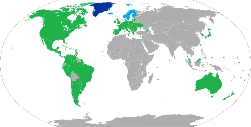 However, Greenland is not part of the European Union or the Schengen Area, so nationals of EU or Schengen countries, except for Nordic countries, do not have the right to reside in Greenland freely, and visas or resident permits issued for entering Schengen countries are not valid for travel to Greenland.[1][2] Specific visas for Greenland can be obtained in consular establishments of the Kingdom of Denmark, and their conditions are similar to those for Schengen visas.[1][2]
