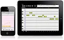 - Mobile Vocaloid Editor is an iPad and iPhone version of the Vocaloid 4 engine. It comes with VY1 "Lite" as standard and demo songs are bundled with the app. The app offers "DYN", "PIT" and "VIB" and handles 16 tracks of data. It can do 999 bars of music, but, in comparison to the full Vocaloid 4 editor, cannot do "growl" or "cross-synthesis".[55][56] The input entries of the app differ from the normal Vocaloid 4 method of importing data. Most functions can be used with one or two fingers and it is possible to draw parameter lines with a single finger. Compared also to iVocaloid, it can achieve the full C2~G8 range of notes. Despite the inclusion of English vocals, it currently has no English interface and is sold only in Japan.