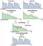 Vocaloid's singing synthesis technology is generally categorized into the concatenative synthesis[13][14] in the frequency domain, which splices and processes the vocal fragments extracted from human singing voices, in the forms of time-frequency representation. The Vocaloid system can produce the realistic voices by adding vocal expressions like the vibrato on the score information.[15] Initially, Vocaloid's synthesis technology was called "Frequency-domain Singing Articulation Splicing and Shaping" (周波数ドメイン歌唱アーティキュレーション接続法, Shūhasū-domein kashō ātikyurēshon setsuzoku-hō) on the release of Vocaloid in 2004,[16] although this name is no longer used since the release of Vocaloid 2 in 2007.[17] "Singing Articulation" is explained as "vocal expressions" such as vibrato and vocal fragments necessary for singing. The Vocaloid and Vocaloid 2 synthesis engines are designed for singing, not reading text aloud,[18] though software such as Vocaloid-flex and Voiceroid have been developed for that. They cannot naturally replicate singing expressions like hoarse voices or shouts.[19]