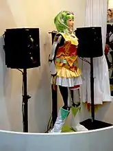 Various voice banks have been released for use with the Vocaloid synthesizer technology.[4] Each is sold as "a singer in a box" designed to act as a replacement for an actual singer.[5] As such, they are released under a moe anthropomorphism. These avatars are also referred to as Vocaloids, and are often marketed as virtual idols; some have gone on to perform at live concerts as an on-stage projection.[6]