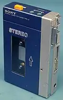 Walkman (Japanese: ウォークマン, Hepburn: U~ōkuman), is a brand of portable audio players manufactured and marketed by Japanese company Sony since 1979. The original Walkman started out as a portable cassette player[3][4] and the brand was later extended to serve most of Sony's portable audio devices; since 2011 it consists exclusively of digital flash memory players. The current flagship product as of 2022 is the WM1ZM2 player.[5]