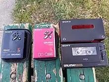 Left to right from top: a cassette Walkman (1980s), a CD Walkman (2001), an MD Walkman (1998), a digital Walkman (2011) | |