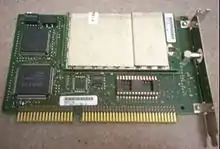 - IRQ, boot ROM, and boot ROM base address configured with a four-position DIP switch block at top of card