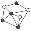 The figure on the right shows a weak 2-coloring of a graph. Each dark vertex (color 1) is adjacent to at least one light vertex (color 2) and vice versa.