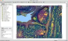 - Terrain analysis tools: surface derivatives (slope, aspect, and curvatures), hillshading, wetness index, relative stream power index, relative landscape position indices
