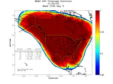 | Atlantic Ocean Region-West | 122 | 35 | AORW | 54°W, later moved to 142°W[18] | July 10, 2003 – July 31, 2017 | Ceased operational WAAS transmissions on July 31, 2017 | L1 Narrowband |