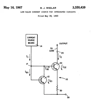 - ↑ RJ Widlar: US Patent Number 03320439; Filed May 26, 1965; Granted May 16, 1967: Low-value current source for integrated circuits