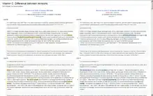 Wikis are generally designed with the philosophy of making it easy to correct mistakes, rather than making it difficult to make them. Thus, while wikis are very open, they provide a means to verify the validity of recent additions to the body of pages. The most prominent, on almost every wiki, is the "Recent Changes" page—a specific list showing recent edits, or a list of edits made within a given time frame.[22] Some wikis can filter the list to remove minor edits and edits made by automatic importing scripts ("bots").[23] From the change log, other functions are accessible in most wikis: the revision history shows previous page versions and the diff feature highlights the changes between two revisions. Using the revision history, an editor can view and restore a previous version of the article. This gives great power to the author to eliminate edits. The diff feature can be used to decide whether or not this is necessary. A regular wiki user can view the diff of an edit listed on the "Recent Changes" page and, if it is an unacceptable edit, consult the history, restoring a previous revision; this process is more or less streamlined, depending on the wiki software used.[24]