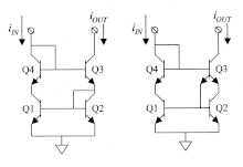 - The four-transistor version of the circuit has extended linearity for operation at high currents.