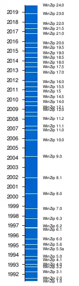 | Table: History of WinZip Windows releases[14][15][16][17] | |||||||||||||||||||||||||||||||||||||||||||||||||||||||||||||||||||||||||||||||||||||||||||||||||||||||||||||||||||||||||||||||||||||||||||||||||||||||||||||||||||||||||||||||||||||||||||||||||||||||||||||||||||||||||||||||||