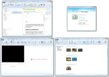![]() Windows Essentials applications - clockwise from the top left: Mail, Messenger, Photo Gallery and Movie Maker. | |