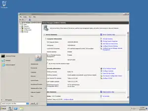 ![]() Screenshot of Windows Server 2008 R2 showing the Server Manager application which is automatically opened when an administrator logs on. | |