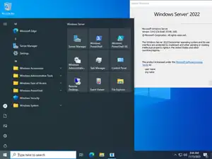 ![]() Windows Server 2022 desktop with Start menu which looks similar to the Windows 10 desktop and Start menu. | |