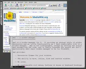 wm2 is a minimalist reparenting window manager for the X Window System written by Chris Cannam. It provides support for moving, resizing, and deleting windows, but does not support icons. Instead of icons, wm2 allows temporary hiding of windows from the desktop environment. Hidden windows can be recovered via a menu from the root window. It does not support interactive configurability, or provide a virtual desktop, and other features of modern window managers such as configurable root menus, toolbars, etc. Configuration options require editing and recompiling a source file and few options are available.