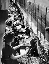 Women worked with cryptography and, after some initial resistance, many operated and worked on the Bombe machines.[54] Joyce Aylard operated the Bombe machine testing different methods to break the Enigma code.[55] Joan Clarke was a cryptographer who worked with her friend, Alan Turing, on the Enigma machine at Bletchley Park.[56] When she was promoted to a higher salary grade, there were no positions in the civil service for a "senior female cryptanalyst," and she was listed as a linguist instead.[57] While Clarke developed a method of increasing the speed of double-encrypted messages, unlike many of the men, her decryption technique was not named after her.[58] Other cryptographers at Bletchley included Margaret Rock, Mavis Lever (later Batey), Ruth Briggs and Kerry Howard.[56] In 1941, Batey's work enabled the Allies to break the Italians' naval code before the Battle of Cape Matapan.[59] In the United States, several faster Bombe machines were created.[60] Women, like Louise Pearsall, were recruited from the WAVES to work on code breaking and operate the American Bombe machines.[61]