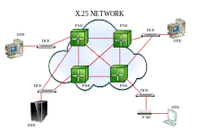 The protocol suite is designed as three conceptual layers, which correspond closely to the lower three layers of the seven-layer OSI Reference Model, although it was developed several years before the OSI model (1984).[3][4] It also supports functionality not found in the OSI network layer.[5][6] An X.25 WAN consists of packet-switching exchange (PSE) nodes as the networking hardware, and leased lines, plain old telephone service connections, or ISDN connections as physical links.
